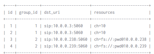 Esta nueva integración se puede realizar en los modulos DISPATCHER y LOAD_BALANCER configurando oportunamente el modulo FREESWITCH de OpenSIPs 2.3. Un ejemplo para LOAD_BALANCER; antes en la tabla donde se configura el modulo, los distintos destinos se indicaban de la siguiente forma: