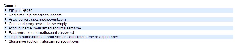 Smsdiscount, como muchos de sus hermanos, usa el protocolo SIP para las llamadas, así que podemos configurarlo en nuestra centralita y/o en nuestro softphone preferido.