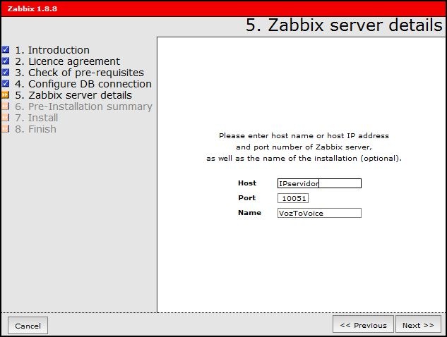 Se pone la dirección IP del servidor, el puerto donde escuchará (10051) y un nombre que lo identifique: