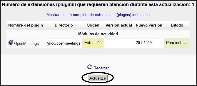 Presionamos el botón “Actualizar” y luego “Continuar”. Aparecerá la pagina de configuración del modulo: