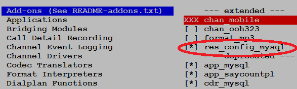 Como la integración se basa en Asterisk Realtime se activa el modulo para MySQL: