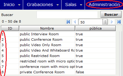 - rooms: Los ID de las conferencias de OpenMeetings donde se quiere utilizar red5sip. Los ID aparecen en esta pagina de Openmeetings: