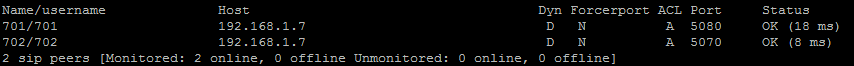 El consumo de CPU sin actividad es casi nulo. Ahora modificamos la extensión ya presente (701) y creamos una nueva (la 702) sin NAT y con directmedia (o canreinvite) en yes: