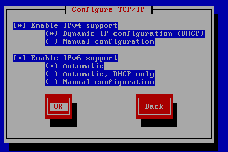 Dejamos la configuración de red automática (vía DHCP). Sucesivamente podremos configurar una IP estática: