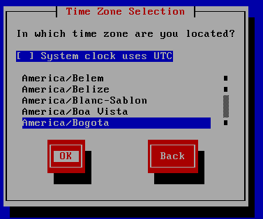 Seleccionamos la zona horaria:
