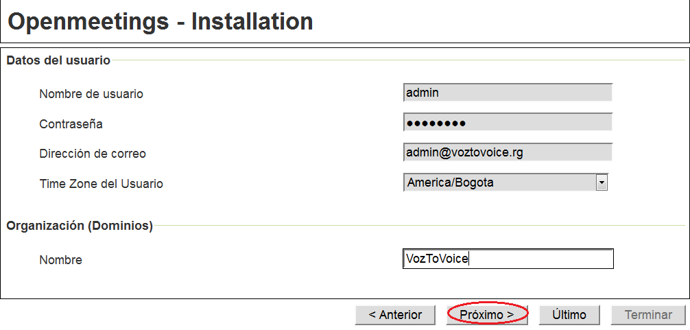 Afinamos la configuración del sistema y seguimos presionando el botón “Próximo”:
