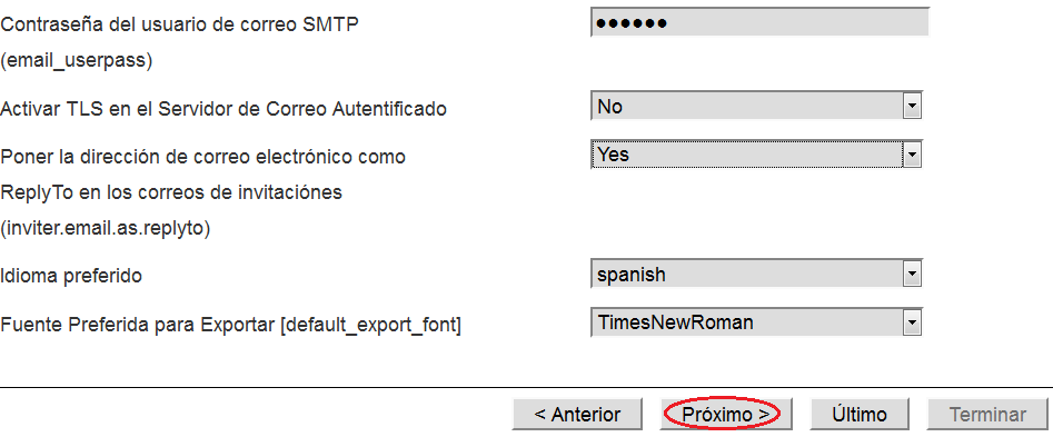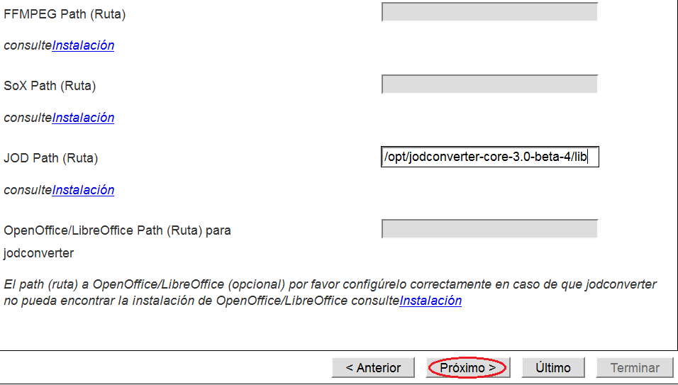 Algunas configuraciones más (la importante es la línea JOD Path). Seguimos presionando el botón “Próximo”: