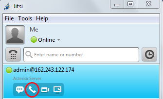 Como primera prueba se llama desde Jitsi el usuario admin. Se presiona el icono del auricular. El X-lite empezará a timbrar:
