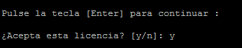 Luego se presiona la tecla envío distintas veces hasta llegar al final de la licencia de uso: