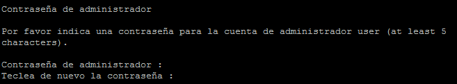 Se crea una contraseña para el usuario administrador y se confirma.