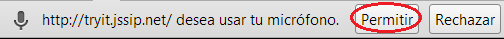 Se desactiva la casilla “enable video” y desde JSSIP se marca 1000. En seguida en Chrome se abrirá una pestaña solicitando el permiso de utilizar el micrófono presente en el computador (ya que se han desactivado las vídeo llamadas):
