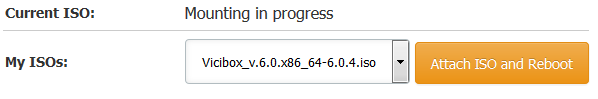 Seleccionamos la ISO que hemos previamente descargado. Presionamos el botón "Attach ISO and Reboot". Después de unos cuantos segundos: