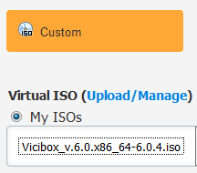 Una vez el VPS esté listo, entramos en la pagina de gestión y en la pestaña Custom ISO: